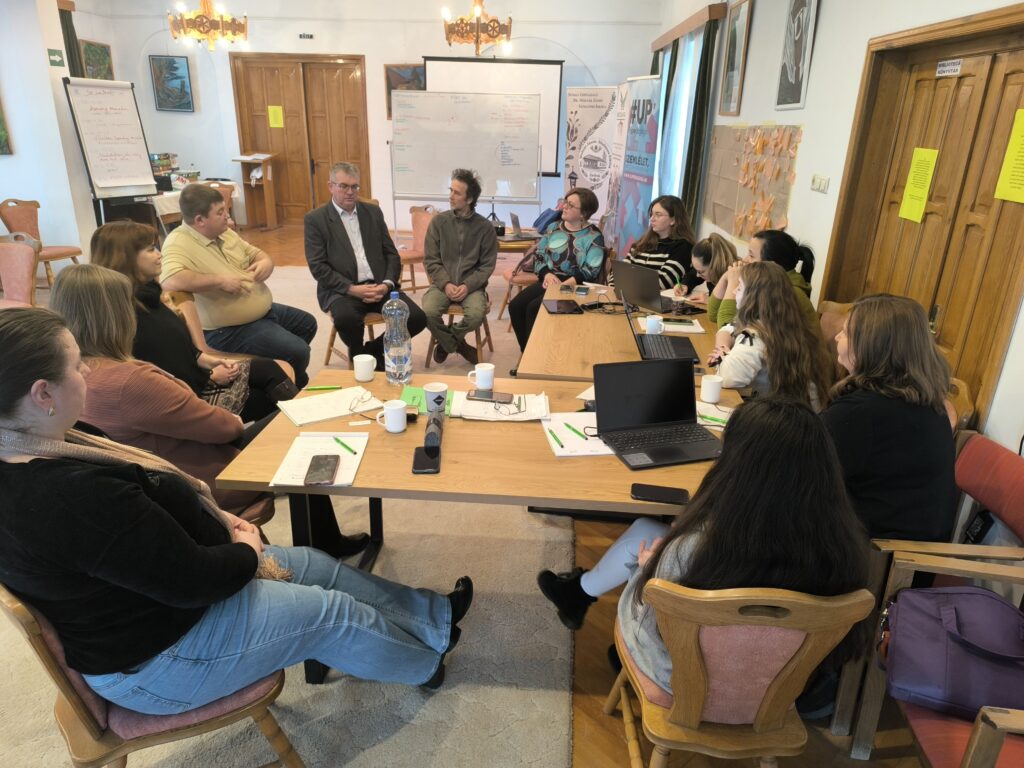 A zsoboki tanulmányút a „Gyökereket és szárnyakat” Erasmus+ projekt egyik meghatározó állomása volt, amely szakmailag megalapozott, ugyanakkor inspiráló és közösségépítő tapasztalatokat kínált minden résztvevő számára. A találkozó nemcsak a partnerség elmélyítését szolgálta, hanem a projekt pedagógiai kereteinek tudatos továbbépítését is. A program csütörtökön délután kezdődött. Különösen megható és emlékezetes pillanat volt, amikor a bugaci résztvevők találkoztak Kerényi Györggyel, iskolájuk névadójának unokájával. Ünnepi beszéde felemelő légkört teremtett: személyes hangon idézte fel nagyapja, Rigó József alakját és örökségét. Visszaemlékezése élő hidat képezett múlt és jelen között, méltó keretet adva a találkozásnak. Ezt követően Rusz Csilla drámapedagógus vezette a napindító, ráhangolódást szolgáló interaktív foglalkozást. Az általa hozott drámajátékok és kreatív gyakorlatok segítették, hogy a jelenlévők oldott légkörben kapcsolódjanak egymáshoz, és nyitottan érkezzenek meg a közös munkába. Az együtt megélt lélekemelő pillanatok láthatóan feltöltötték a csoportot. Sokan jelezték vissza, hogy ez az együttlét nemcsak ráhangolódás volt, hanem érzelmi megerősítés is – olyan élmény, amely energiát adott a további szakmai munkához, és megerősítette bennük a közösséghez tartozás érzését.